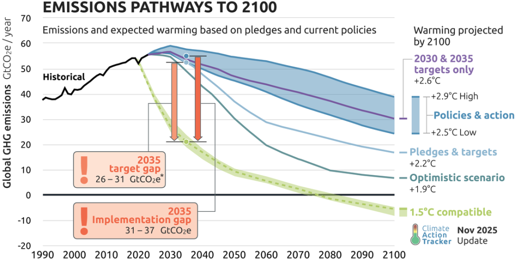 - [2] Emissions Gap Report 2025: Off Target – Continued Collective inaction puts Global Temperature Goal at Risk https://wedocs.unep.org/handle/20.500.11822/48854